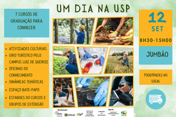 No próximo dia 12 de setembro, das 8h30 às 15h, a Escola Superior de Agricultura Luiz de Queiroz (Esalq/USP) realizará a primeira edição do programa “USP e as Profissões – Um dia na USP”, iniciativa da Pró-Reitoria de Cultura e Extensão Universitária (PRCEU).