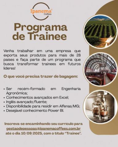Inscrições: Interessados deverão enviar o currículo para gestaodepessoas@ipanemacoffees.com.br, até o dia 10 de setembro de 2025, com o título "Trainee".